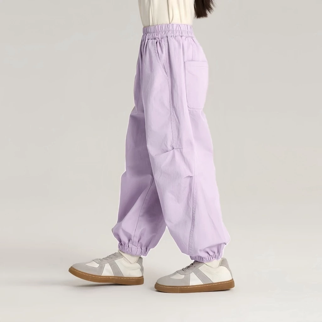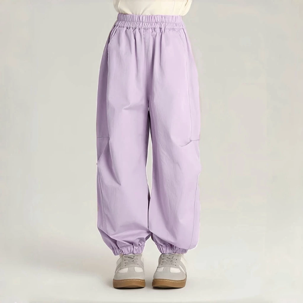 กางเกงคาร์โก้ขายาวสำหรับเด็กผู้หญิง สีม่วง