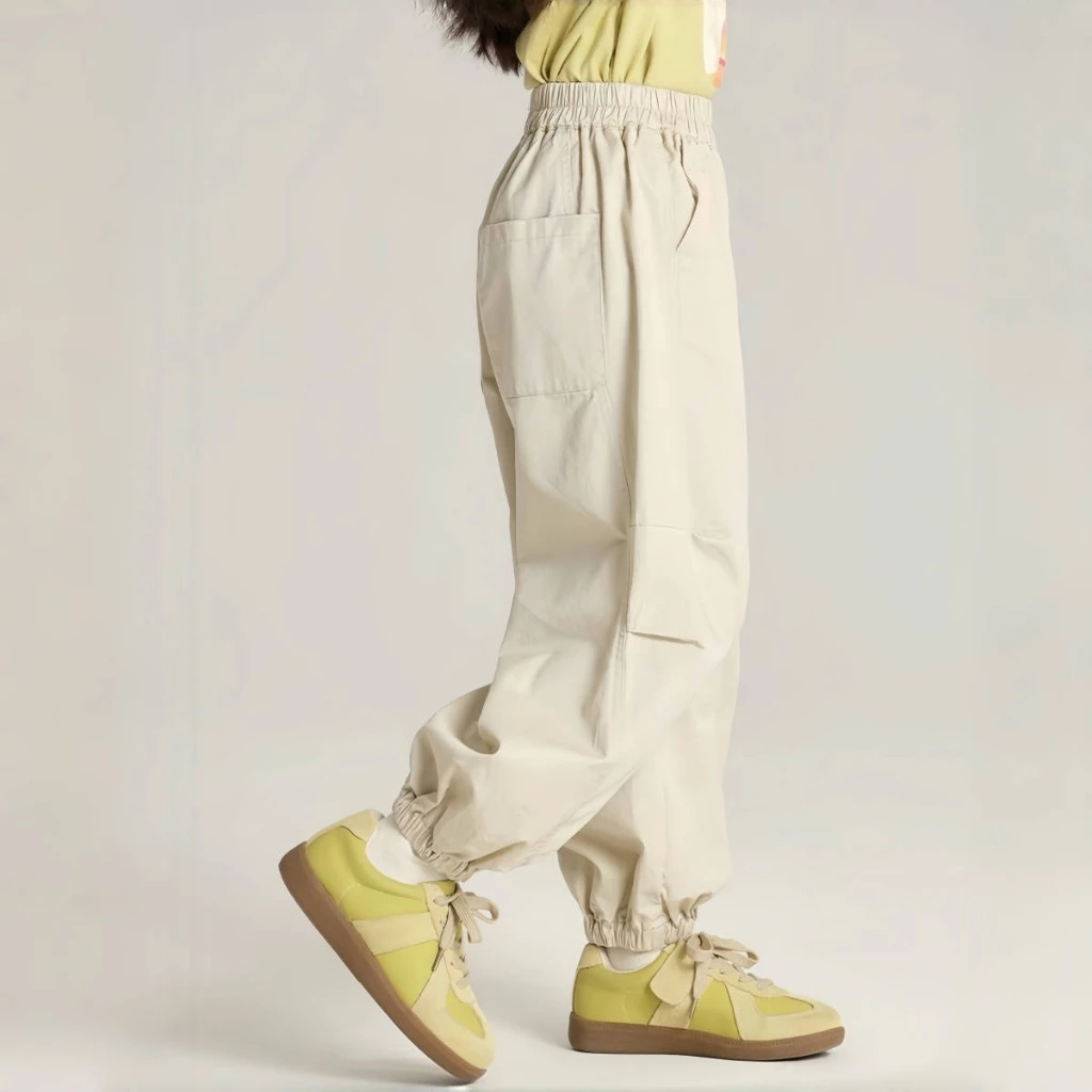 กางเกงคาร์โก้เด็กแฟชั่น กางเกงขายาวสำหรับเด็กผู้หญิง รัดข้อเท้า เอวยางยืด