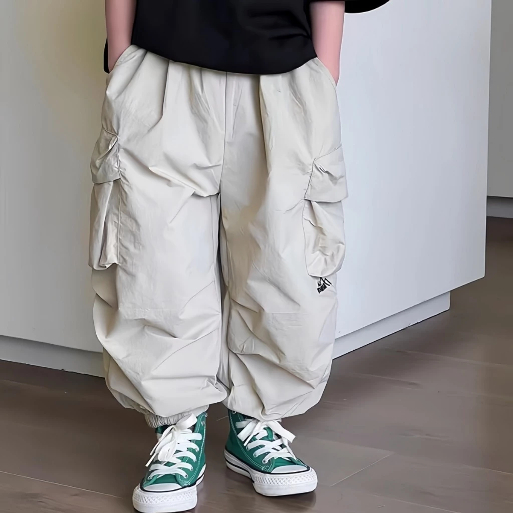 กางเกงเด็กชาย กางเกงคาร์โก้เด็ก ขายาว สไตล์เกาหลี เอวยางยืด ลำลอง ทรงหลวม ใส่สบาย