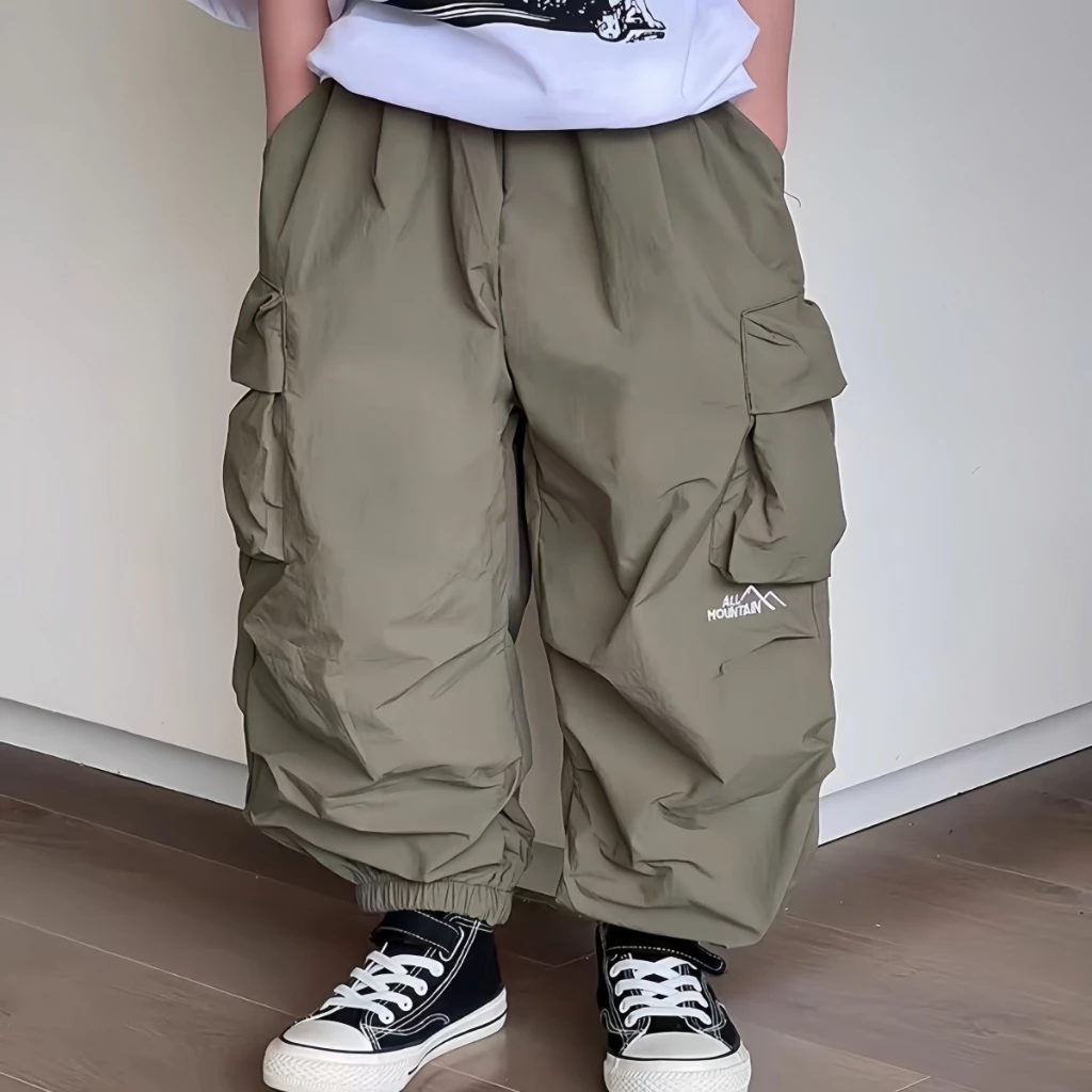 กางเกงเด็กชาย กางเกงคาร์โก้เด็ก ขายาว สไตล์เกาหลี เอวยางยืด ลำลอง ทรงหลวม ใส่สบาย
