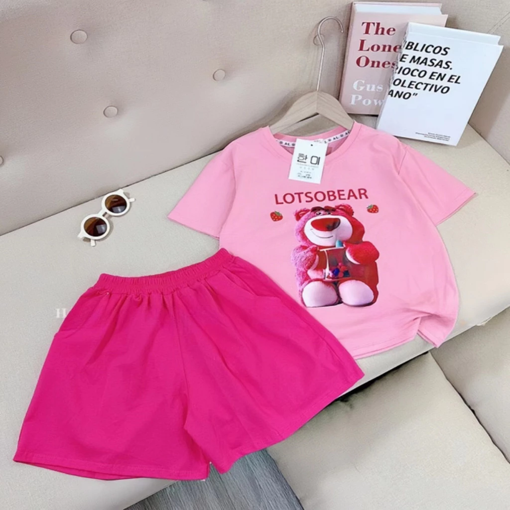 ชุดเซ็ทแฟชั่นเด็กผู้หญิง ชุดเด็กหญิงหมีสตรอเบอร์รี่