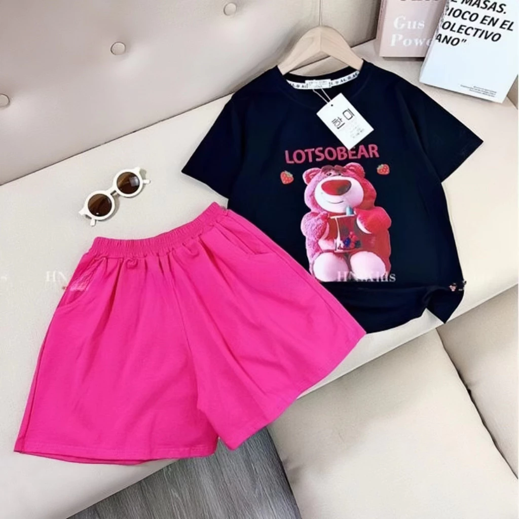 ชุดเซ็ทแฟชั่นเด็กผู้หญิง ชุดเด็กหญิงหมีสตรอเบอร์รี่